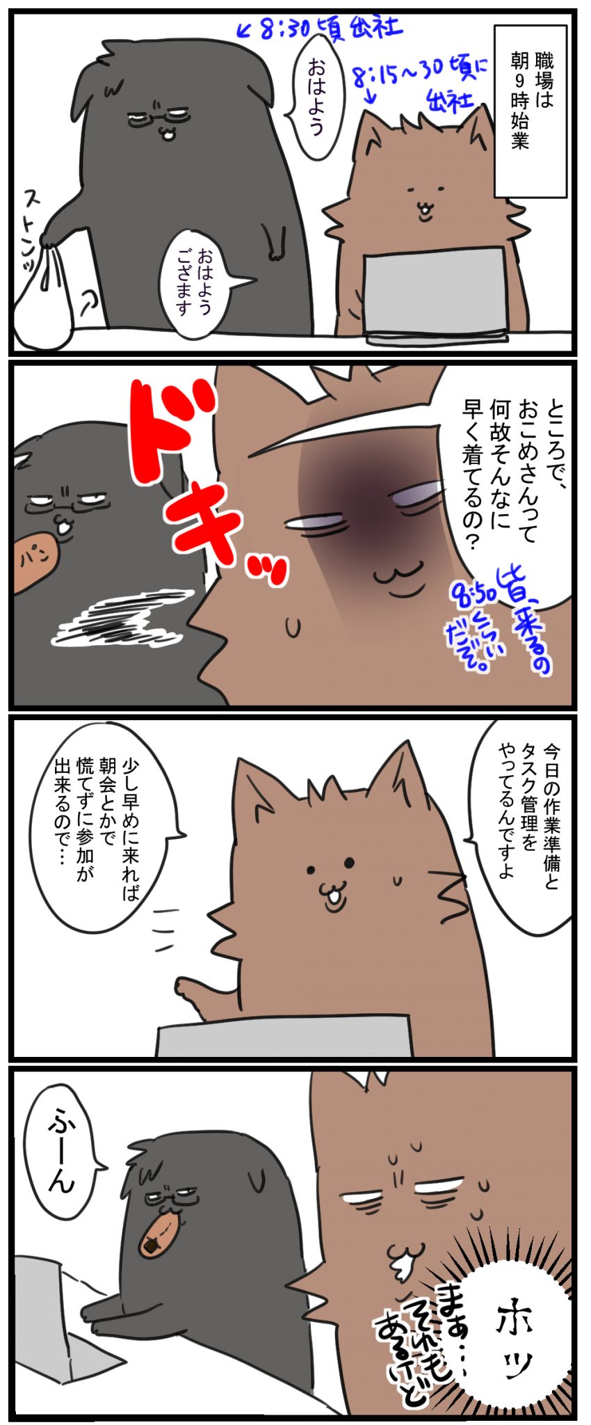 HOME > 仕事ネタ > エンジニア > エンジニア 結婚する前 挨拶って大事なのは知ってるよ!でもねぇ! 2019年1月20日 Post Share Pocket Hatena LINE URLコピー しかし実際は・・・ 社会人三年目でもこんな状態だぜ… 挨拶しないで席に座ることもチキンすぎて出来ない 先月、社会人初の遅刻と突発休暇を取ったよ。 電車遅延に遭遇しても絶対遅刻しなかった私が 人生初の体調不良で動けなり仕方なく、遅刻と突発休暇を取ることに。 職場の皆に報告しなきゃいけないというのがツラすぎて 二度と遅刻と突発休暇しないと決めた… 「体調不良なので遅刻(休み)ます」なんて言えないよう ひぃい 真面目ではない。 ただちょっとチキンなだけ。 読んでいただきありがとうございました! ブログランキングに参加しています。 よろしければ押してくれるとうれしいです! 絵日記ランキング Post Share Pocket Hatena LINE URLコピー おすすめ記事 -エンジニア, 結婚する前 -IT, IT企業, U氏, インフラ, インフラエンジニア, おこめ