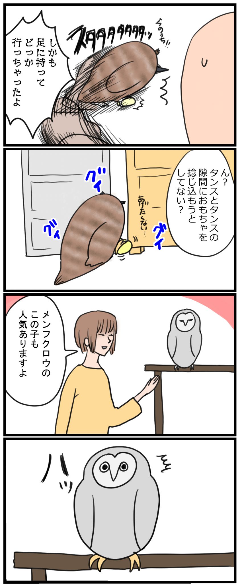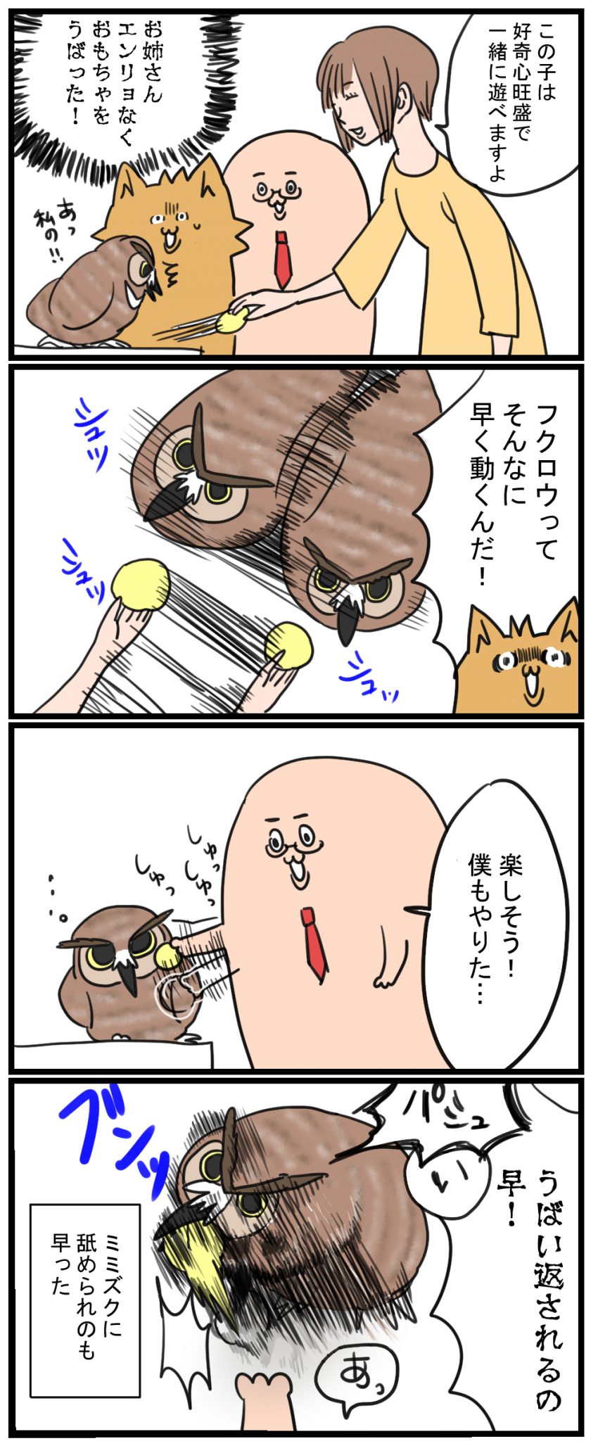HOME > トモ氏 > トモ氏 雑記 フクロウカフェに行ってきた② 2019年2月25日 Post Share Pocket Hatena LINE URLコピー しつこいけど続くよ! 餌の時だけ動くと思っていたけど フクロウも色々性格があるらしい。 次回のメンフクロウも 変わった性格だったよ。 次回お楽しみに。。 前回は見てない人は下から見てね 前回の話 フクロウカフェ行ってきた 夫がIT企業社長!画家ライフ! by おこめフクロウカフェ➀https://www.comeoishii.com/2019/02/25/post-203 読んでいただきありがとうございました! ブログランキングに参加しています。 よろしければ押してくれるとうれしいです! 絵日記ランキング Post Share Pocket Hatena LINE URLコピー おすすめ記事 -トモ氏, 雑記 -おこめ, カフェ, デート, トモ氏, フクロウ, フクロウカフェ, プライベート