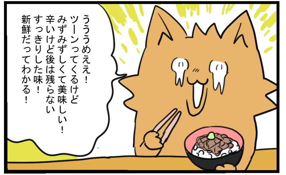 HOME > 旅行 > 国内旅行 > トモ氏 国内旅行 旅行 伊豆旅行!後編 ~本命のわさび丼~ 2019年3月2日 Post Share Pocket Hatena LINE URLコピー 前回の話 1泊2日で伊豆に行ってきた!前編 ~下田のロープウェイ~ わさび丼食べに「かどや」に行ってきたよ! 私の代わりにやっているトモ氏 そして出来上がり! うまそおおおお 食べてみた。 死ぬほど辛いけど 死ぬほどうまい かどや、 家の近くにあってほしい 前回の話 1泊2日で伊豆に行ってきた!前編 ~下田のロープウェイ~ 読んでいただきありがとうございました! ブログランキングに参加しています。 よろしければ押してくれるとうれしいです! 絵日記ランキング Post Share Pocket Hatena LINE URLコピー おすすめ記事 -トモ氏, 国内旅行, 旅行 -おこめ, トモ氏, プライベート, わさび丼, 国内旅行, 旅行, 静岡県