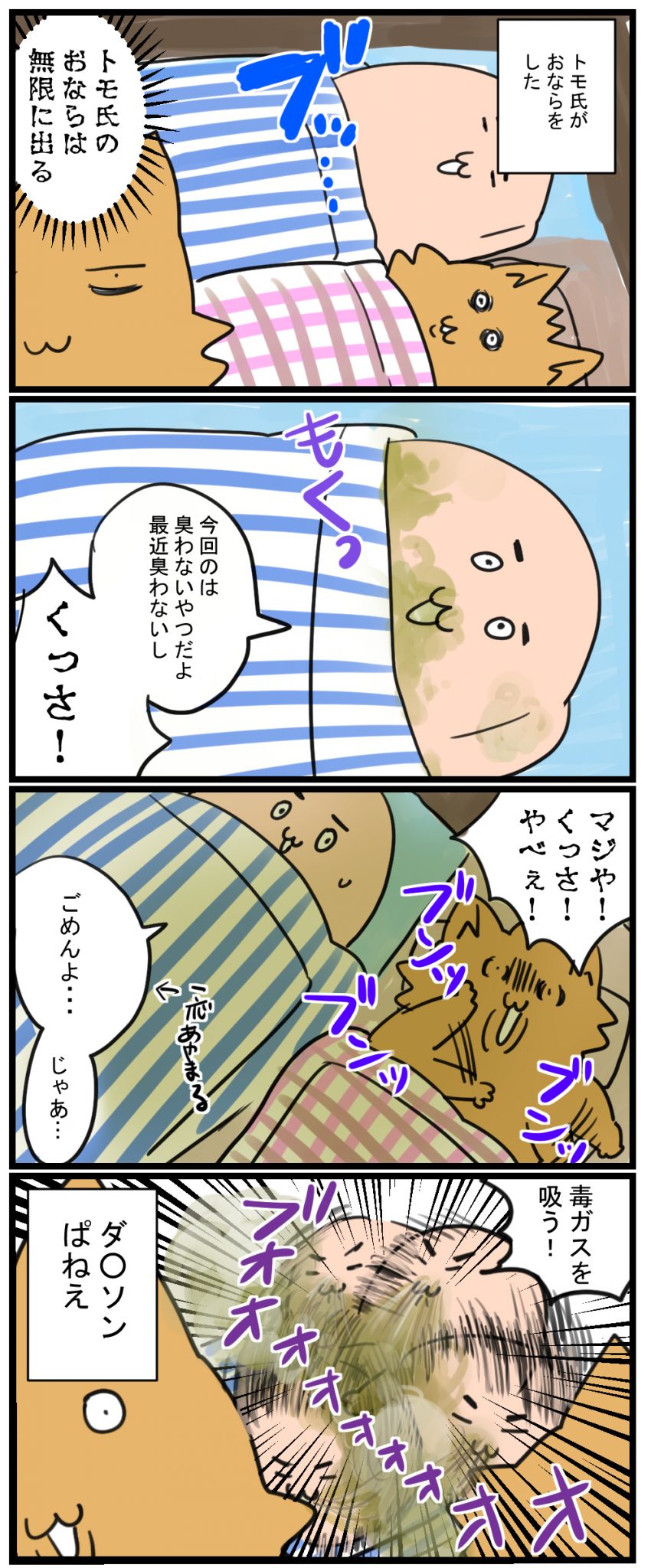 HOME > トモ氏 > トモ氏 トモ氏のダイ〇ン化加速中 2019年5月2日 Post Share Pocket Hatena LINE URLコピー 前回の話 おならで自爆した話 「音はしないけど被害はデカい」 でかい音のおならをした話 「今回は音がデカかった」 おならから逃げる話 「頻繁にやっている」 すばらしい吸引力 おなら伝説を更新しまくるトモ氏 読んでいただきありがとうございました! ブログランキングに参加しています。 よろしければ押してくれるとうれしいです! 絵日記ランキング Post Share Pocket Hatena LINE URLコピー おすすめ記事 -トモ氏