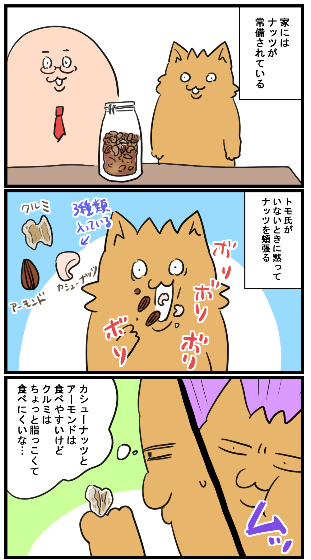 HOME > トモ氏 > トモ氏 社長夫人らしからぬ行動 ナッツ美味いよね 2019年7月26日 Post Share Pocket Hatena LINE URLコピー トモ氏、クルミ処理に励む 読んでいただきありがとうございました! ブログランキングに参加しています。 よろしければ押してくれるとうれしいです! 絵日記ランキング Post Share Pocket Hatena LINE URLコピー おすすめ記事 -トモ氏, 社長夫人らしからぬ行動 -おこめ, グルメ, トモ氏, ナッツ, プライベート