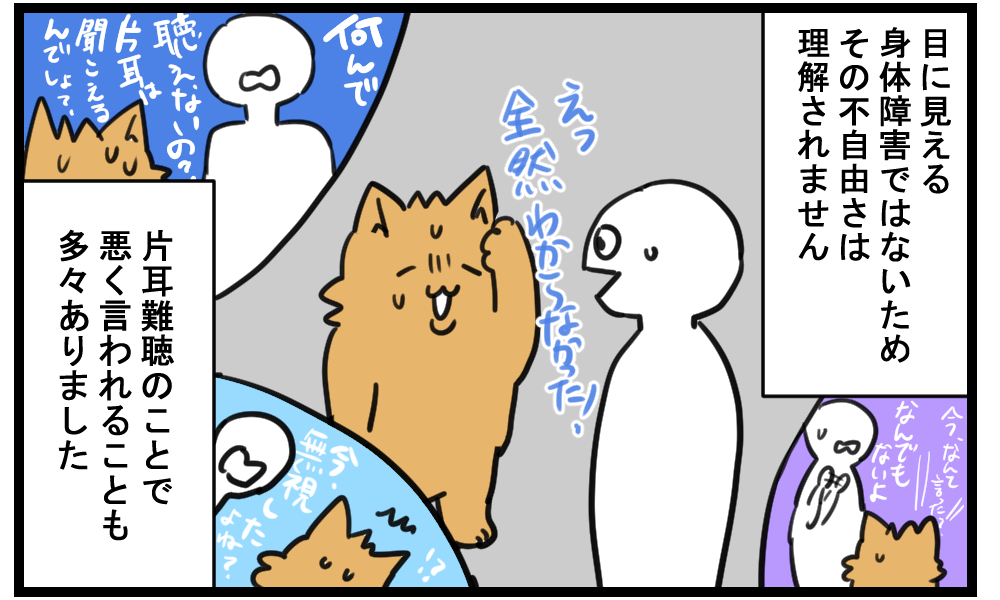 なんだかんだで、今は片耳であることを忘れるくらいに気にしないようになりました。