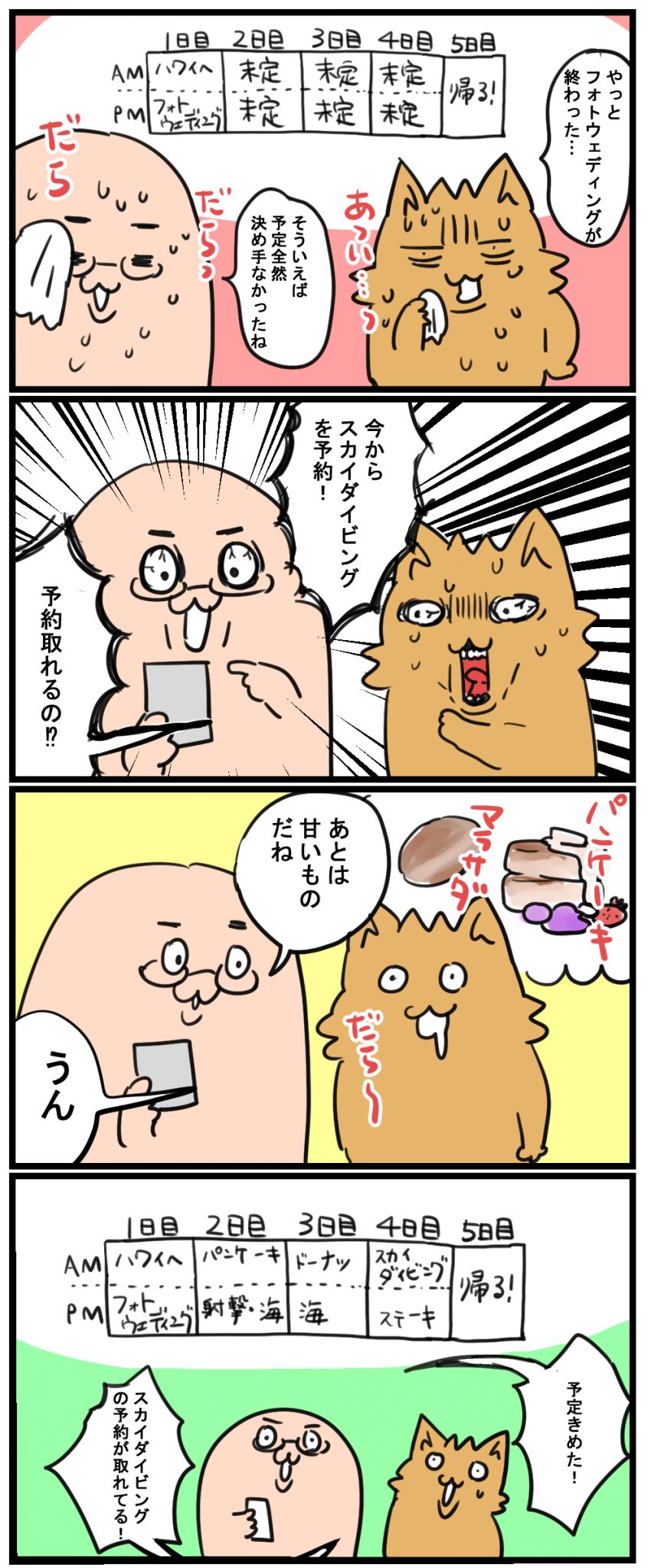 HOME > 旅行 > 海外旅行 > トモ氏 旅行 海外旅行 ハワイ旅行①~予定決め~ 2019年11月26日 Post Share Pocket Hatena LINE URLコピー フォトウェディング目当てだったから、予定も何も決めていなかったよ 私はマラサダさえ食べれば!満足!の予定だった…(笑) ハワイネタ続くよ ↓ハワイでフォトウェディングしたときの話 夫がIT企業社長!画家ライフ! by おこめハワイでフォトウェディングしたときの話①https://www.comeoishii.com/2019/10/24/post-1568 読んでいただきありがとうございました! ブログランキングに参加しています。 よろしければ押してくれるとうれしいです! 絵日記ランキング Post Share Pocket Hatena LINE URLコピー おすすめ記事 -トモ氏, 旅行, 海外旅行 -ANA, ウェディングドレス, おこめ, スカイダイビング, トモ氏, ハワイ, フォトウェディング, ホノルル, マラサダ, ワイキキ, 旅行, 海外旅行, 結婚式