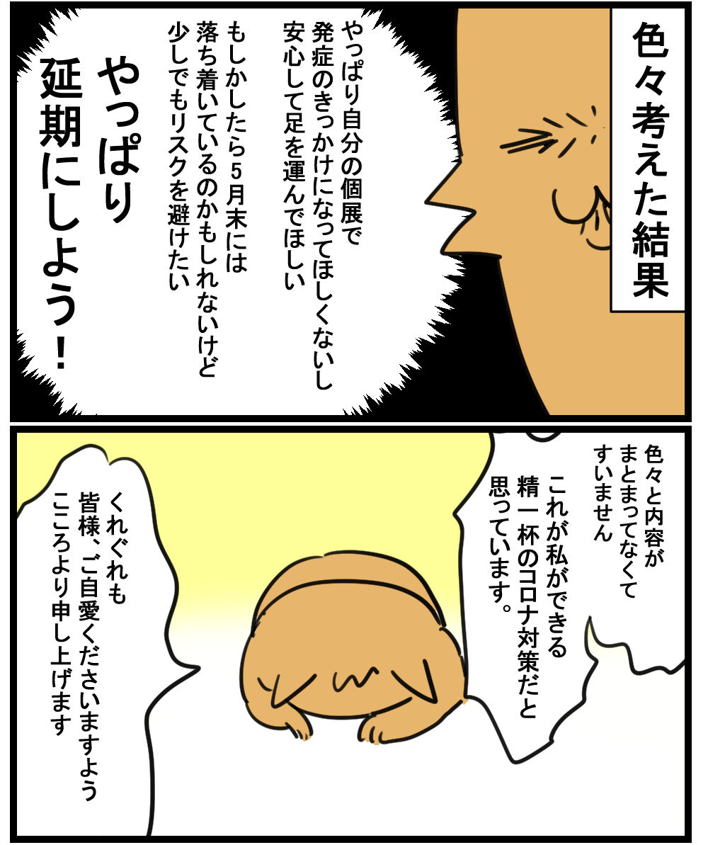 たくさんの個展やグループ展、美術館に限らず、コンサートや演劇等が延期や中止になっています。