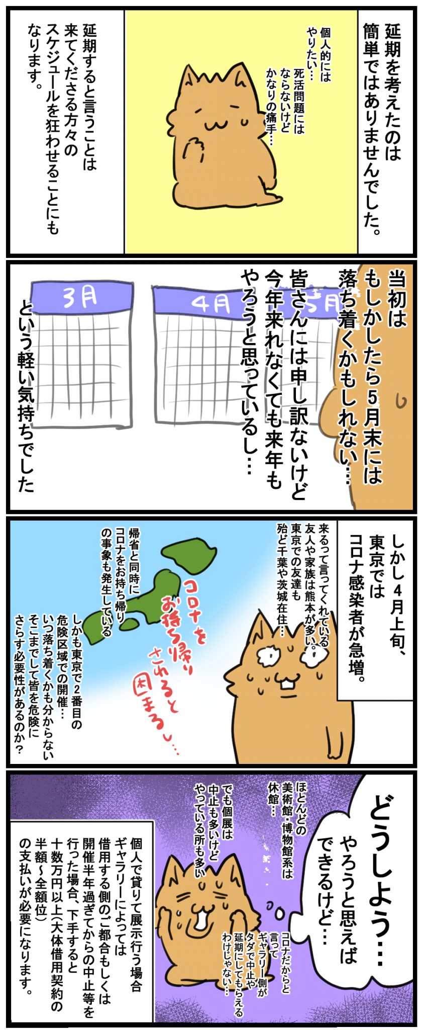 1週間も借りていたところを中止したり、延期することになると、ギャラリー側も大変です。。。
