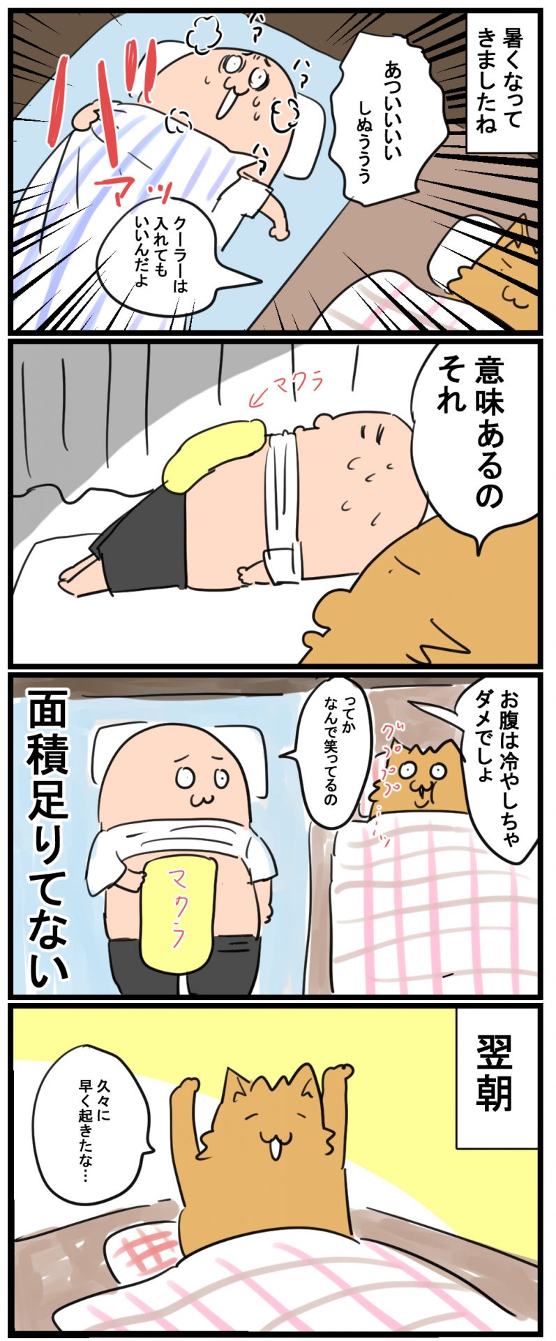 HOME > トモ氏 > トモ氏 雑記 暑がりトモ氏の寝方 2020年6月7日 Post Share Pocket Hatena LINE URLコピー 後からじわる おなかは? 読んでいただきありがとうございました! ブログランキングに参加しています。 よろしければ押してくれるとうれしいです! 絵日記ランキング Post Share Pocket Hatena LINE URLコピー おすすめ記事 -トモ氏, 雑記 -おこめ, トモ氏, プライベート, 夏, 寝方, 暑い日, 熱中症, 熱中症対策
