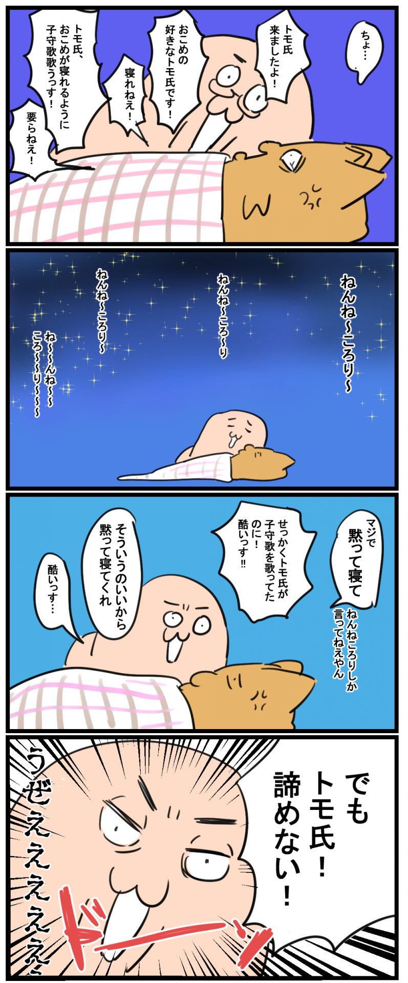 HOME > トモ氏 > トモ氏 雑記 寝る前のトモ氏が超絶ウザすぎる 2020年6月10日 Post Share Pocket Hatena LINE URLコピー ついに マジふざけんな 読んでいただきありがとうございました! ブログランキングに参加しています。 よろしければ押してくれるとうれしいです! 絵日記ランキング Post Share Pocket Hatena LINE URLコピー おすすめ記事 -トモ氏, 雑記 -ウザい, ウザい夫, ウザすぎる, おこめ, トモ氏, 子守歌, 寝る前, 暴言