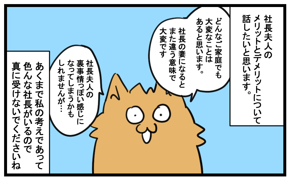 HOME > トモ氏 > トモ氏 仕事ネタ 社長夫人らしからぬ行動 社長夫人になるメリットとデメリット① 2020年7月12日 Post Share Pocket Hatena LINE URLコピー 今回の記事では「メリット」だけ記載します。 つづく 読んでいただきありがとうございました! ブログランキングに参加しています。 よろしければ押してくれるとうれしいです! 絵日記ランキング Post Share Pocket Hatena LINE URLコピー おすすめ記事 -トモ氏, 仕事ネタ, 社長夫人らしからぬ行動 -IT, IT企業, IT企業社長, IT社長, おこめ, デメリット, トモ氏, メリット, 夫, 社長の妻, 社長夫人