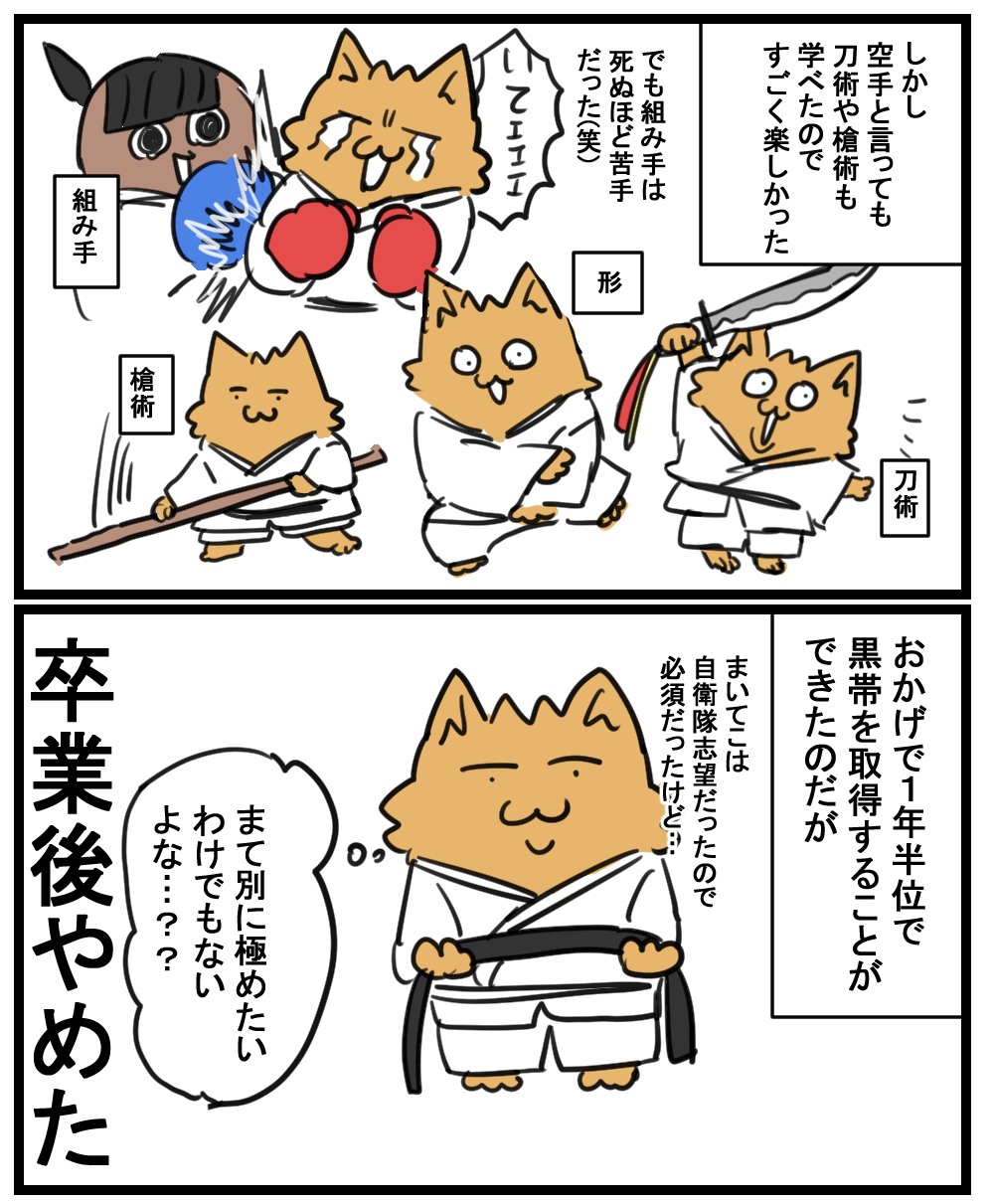 HOME > 雑記 > 雑記 おこめが高校時代に空手やっていた話 2020年8月5日 Post Share Pocket Hatena LINE URLコピー 即答 女子高の空手部ってことだったので 気軽に入部したつもりだった まいてこの力は尋常じゃなかった バカ力だった 槍術や刀術は今でもやりたい(笑) 読んでいただきありがとうございました! ブログランキングに参加しています。 よろしければ押してくれるとうれしいです! 絵日記ランキング Post Share Pocket Hatena LINE URLコピー おすすめ記事 -雑記 -おこめ, まいてこ, 刀術, 槍術, 空手, 高校時代