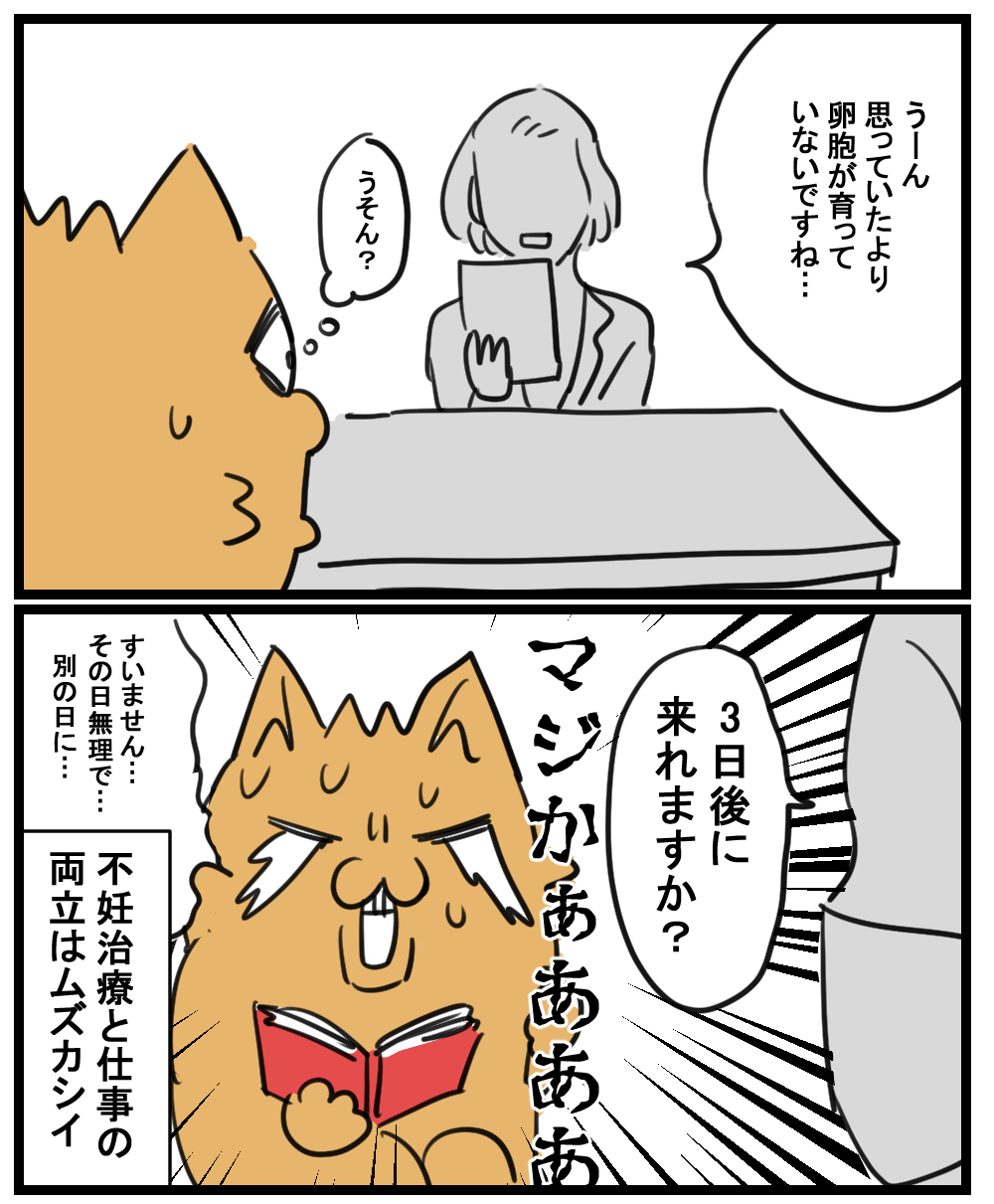 HOME > 妊活 > 妊活 【第5話】不妊治療を始めた話【仕事との両立】 2020年9月1日 Post Share Pocket Hatena LINE URLコピー 前回の話 [blogcard url="https://www.comeoishii.com/2020/08/20/post-2757/"] 審査結果 最初の壁は「治療と仕事の両立」でした ある程度融通の利く仕事場ではありましたが… さすがに忙しいときは無理でした。 前回の話 [blogcard url="https://www.comeoishii.com/2020/08/20/post-2757/"] 読んでいただきありがとうございました! ブログランキングに参加しています。 よろしければ押してくれるとうれしいです! 絵日記ランキング Post Share Pocket Hatena LINE URLコピー おすすめ記事 -妊活 -おこめ, 不妊, 不妊治療, 妊娠, 妊活, 生理不順, 病院, 黄体機能不全