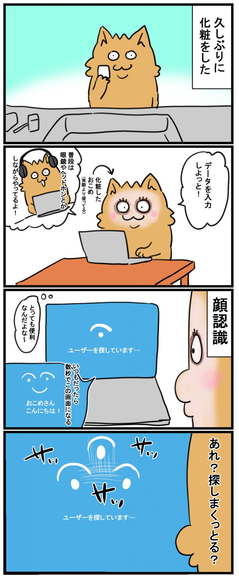 HOME > プライベート > プライベート 雑記 化粧したらsurfaceの顔認証が反応してくれない 2020年9月28日 Post Share Pocket Hatena LINE URLコピー かなしい 読んでいただきありがとうございました! ブログランキングに参加しています。 よろしければ押してくれるとうれしいです! 絵日記ランキング Post Share Pocket Hatena LINE URLコピー おすすめ記事 -プライベート, 雑記 -surface, おこめ, 化粧, 顔認証