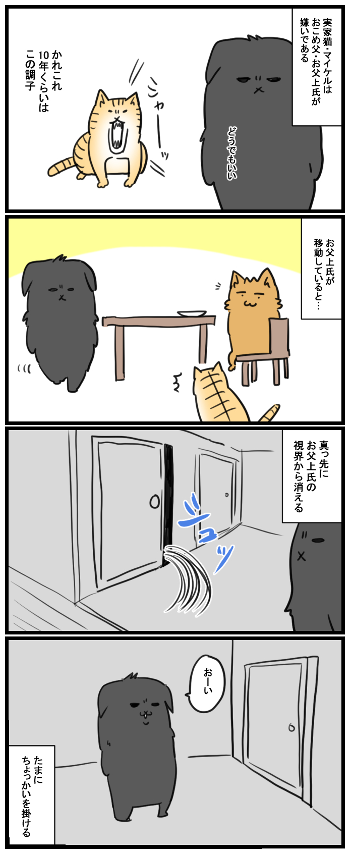 HOME > 家族ネタ > お父上氏 > お父上氏 家族ネタ お父上氏と実家猫は仲が悪い 2021年3月31日 Post Share Pocket Hatena LINE URLコピー 歩みおろうとしない二人 読んでいただきありがとうございました! ブログランキングに参加しています。 よろしければ押してくれるとうれしいです! 絵日記ランキング Post Share Pocket Hatena LINE URLコピー おすすめ記事 -お父上氏, 家族ネタ -おこめ, お父上氏, マイケル, 喧嘩, 実家猫