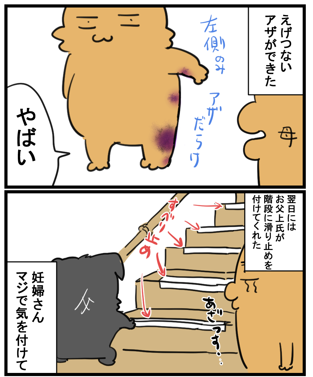 HOME > 家族ネタ > お父上氏 > お父上氏 妊娠ネタ 家族ネタ 母上氏 妊娠9か月目で階段から滑り落ちた 2021年4月28日 Post Share Pocket Hatena LINE URLコピー 気を付けていてもふらつく おこめの母も昔、予定日より1週間前に 階段から滑り落ちてその日に出産したらしい 読んでいただきありがとうございました! ブログランキングに参加しています。 よろしければ押してくれるとうれしいです! 絵日記ランキング Post Share Pocket Hatena LINE URLコピー おすすめ記事 -お父上氏, 妊娠ネタ, 家族ネタ, 母上氏 -事故, 妊娠9か月目, 妊娠後期, 妊婦, 転落