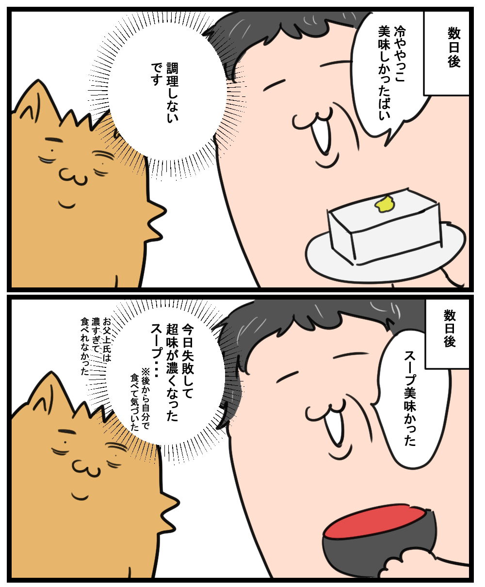 HOME > 家族ネタ > 家族ネタ 雑記 祖母から褒めているようで褒めてない言葉をもらっている話 2021年5月12日 Post Share Pocket Hatena LINE URLコピー これはまだわかる ※誤字※ 「調理していないです」が正しいです スープは温めなおしているけど 出来立てを提供できるほど要領がいい人間じゃない(笑) 読んでいただきありがとうございました! ブログランキングに参加しています。 よろしければ押してくれるとうれしいです! 絵日記ランキング Post Share Pocket Hatena LINE URLコピー おすすめ記事 -家族ネタ, 雑記 -おこめ, グルメ, プライベート, 実家, 料理, 祖母, 里帰り出産