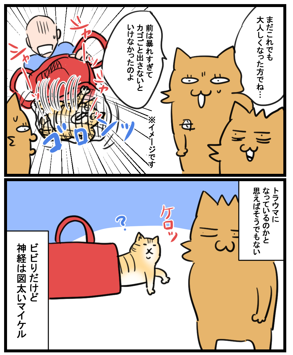 HOME > 家族ネタ > 母上氏 > プライベート 家族ネタ 母上氏 病院に行くと狂暴な実家猫 2021年6月2日 Post Share Pocket Hatena LINE URLコピー 狂暴過ぎて今まで行ってた動物病院に断られてしまった実家猫マイケル たまに病院でネットに入れられている猫ちゃんを見ると 「うちの猫と同じか・・・大変ですね・・・」と同情してしまう(笑) 読んでいただきありがとうございました! ブログランキングに参加しています。 よろしければ押してくれるとうれしいです! 絵日記ランキング Post Share Pocket Hatena LINE URLコピー おすすめ記事 -プライベート, 家族ネタ, 母上氏 -おこめ, マイケル, 動物病院, 実家猫, 猫, 病院