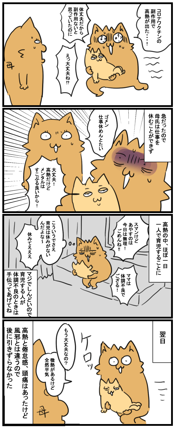 HOME > おつぶ > おつぶ 育児 おこめはコロナワクチン接種に行ってきました 2021年8月18日 Post Share Pocket Hatena LINE URLコピー 誰だよ、副作用なんて出ないって言ったの(※一コマ目、自分で言っている) 読んでいただきありがとうございました! ブログランキングに参加しています。 よろしければ押してくれるとうれしいです! 絵日記ランキング Post Share Pocket Hatena LINE URLコピー おすすめ記事 -おつぶ, 育児 -おこめ, おつぶ, コロナ, コロナワクチン, ワクチン接種, 母氏, 育児, 高熱