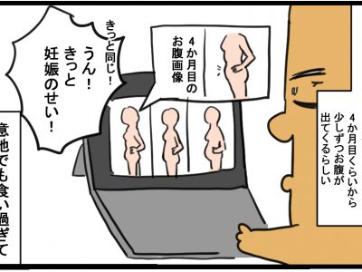 食い過ぎて腹が出たのか、妊娠で腹が出てきているのか曖昧過ぎる